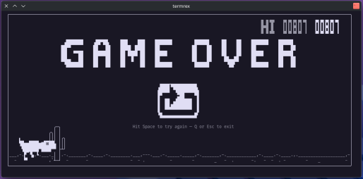 A terminal-based endless runner game inspired by the Chrome Dino offline game. Players jump or duck to avoid obstacles in real-time with smo...